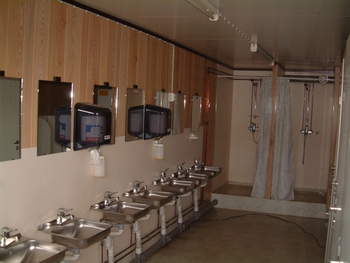 Sosiaalitiloissa on tilat pukeutumiseen, peseytymiseen ja wc-tila sekä vaatekaapit.